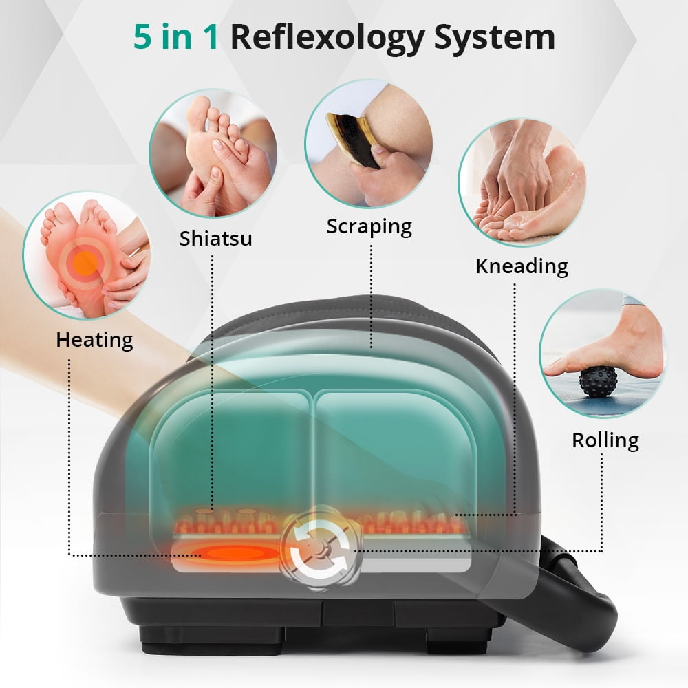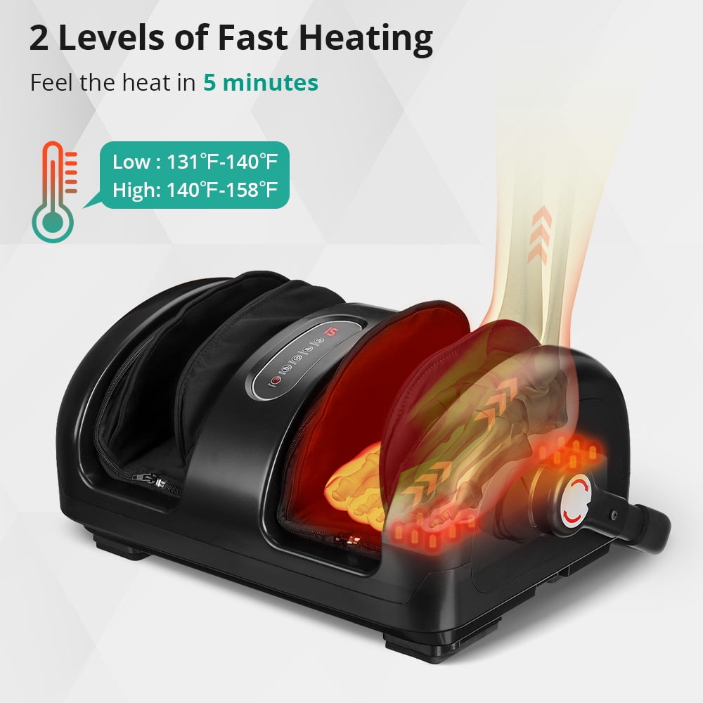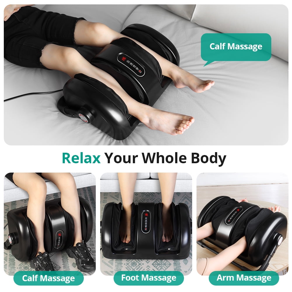 Set squeezing, roller, scraping, shiatsu, kneading, and heating in one foot massager for circulation and pain relief, providing all-around relaxation for your feet, help you improve blood flow and stimulate recovery. The 4-intensity massage features that roller speed and airbag squeeze strength gradually increase with gears, which cares for people with different body feelings.