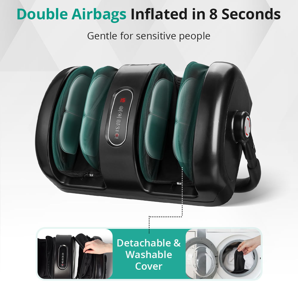 Dual airbags on each side and 8 airbags in total, more effectively relieve foot fatigue and improve circulation. Airbag Compression squeezes your toes, soles, insteps, ankles, and calves with the airbag. Unlike the feeling of the blood pressure cuff, airbag compression is a deep massage that can relieve physical fatigue, relax muscle tension and promote better sleep.