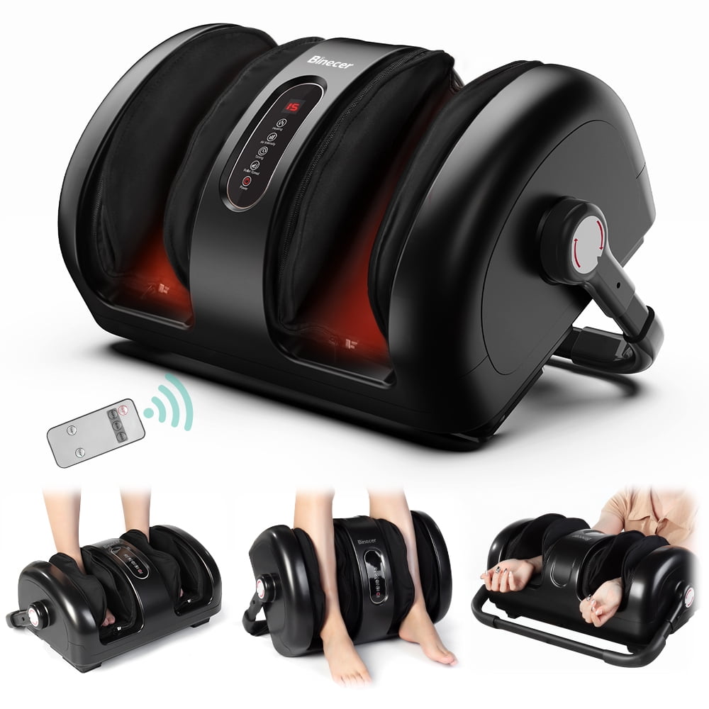 Binecer Shiatsu Foot Massager, Foot Massager Machine with Heat and Pressure, 4 Modes & Intensities, Remote Control, Kneading, Rolling, Scraping for Calf, Legs, Arms, Christmas Gifts