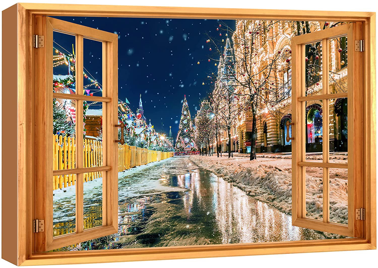 Canvas Print Wall Art Window View Christmas Noel Paris France Street - 24"x36"