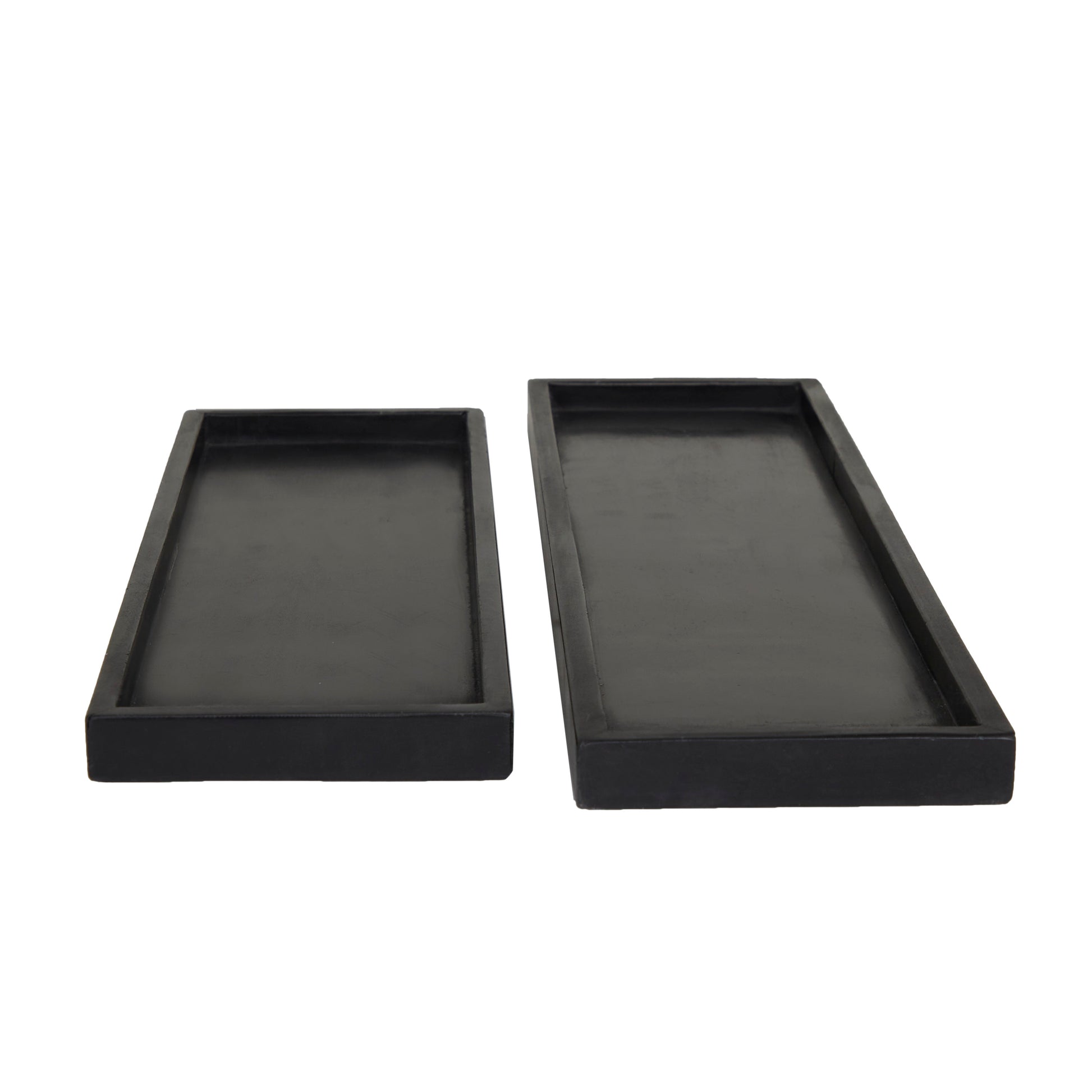 About this itemProduct detailsA versatile piece for storage or as a decorative display on any surface space. Keep your table top protected as you display your memorabilia and belonging on these trays. Display your coffee table or ottoman decor with these modern nesting trays for a posh and minimalist style in your bedroom or living room space. This item ships in 1 carton. Please note that this item is for decorative purpose only and is not food safe. Suitable for indoor use only. Made in India. Set of 2 nesting trays. Modern style. CosmoLiving by Cosmopolitan 7"W, 22"H Marble Modern Tray, Black, 2-Piece Features a modern style inspired by a minimalistic design with clean lines and angular structures Marble gives these trays solid and durable forms Obsidian black overall finish highlights these decorative trays A single tone finish with raised border for secure display are featured around each of these trays Items measure 22"L x 7"W x 1"H, 18"L x 6"W x 1"H and collectively weighs 13 lbs Accentuate rectangular nesting trays with marble textured surface Wipe clean with a dry cloth Marble is molded and smoothed into nesting trays in basic style construction error:We aim to show you accurate product information. Manufacturers, suppliers and others provide what you see here, and we have not verified it. See our disclaimer