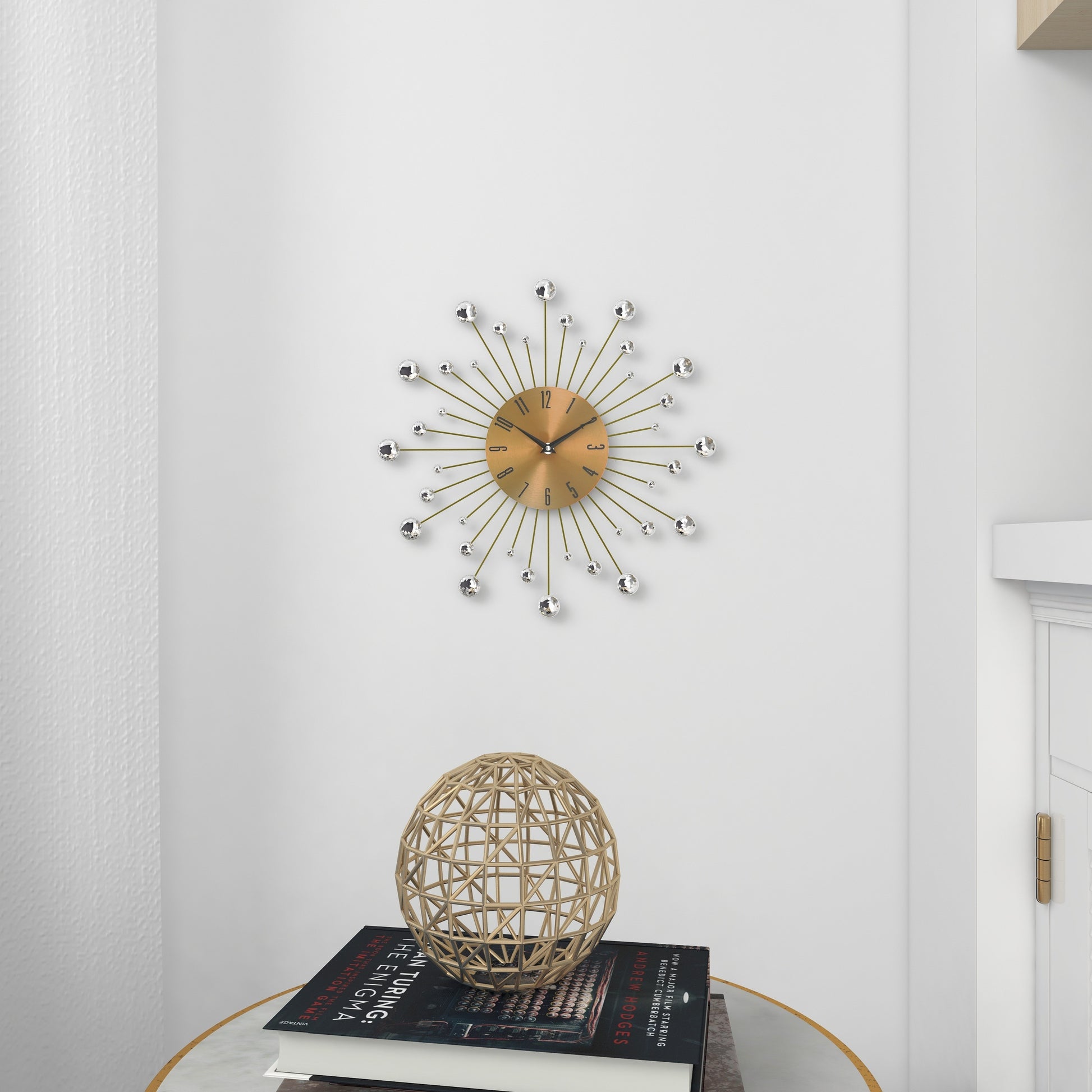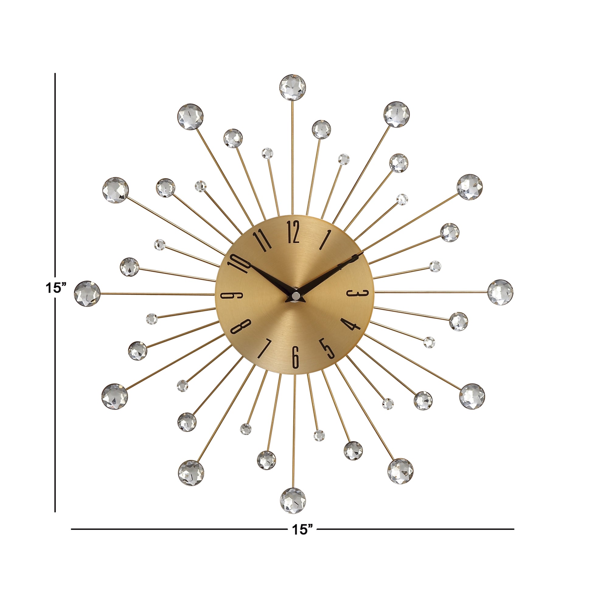 DecMode Gold Metal Glam Wall Clock, 15”L x 0.5”W x 15”H, Features Starburst Design