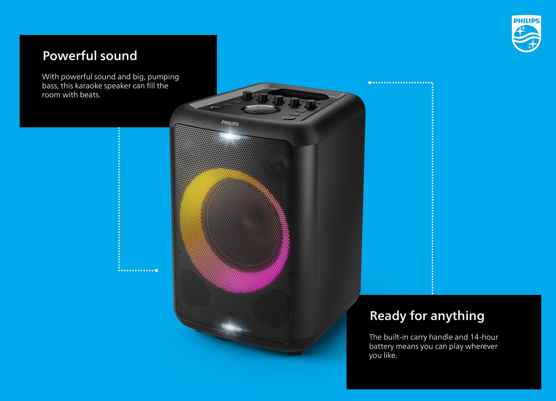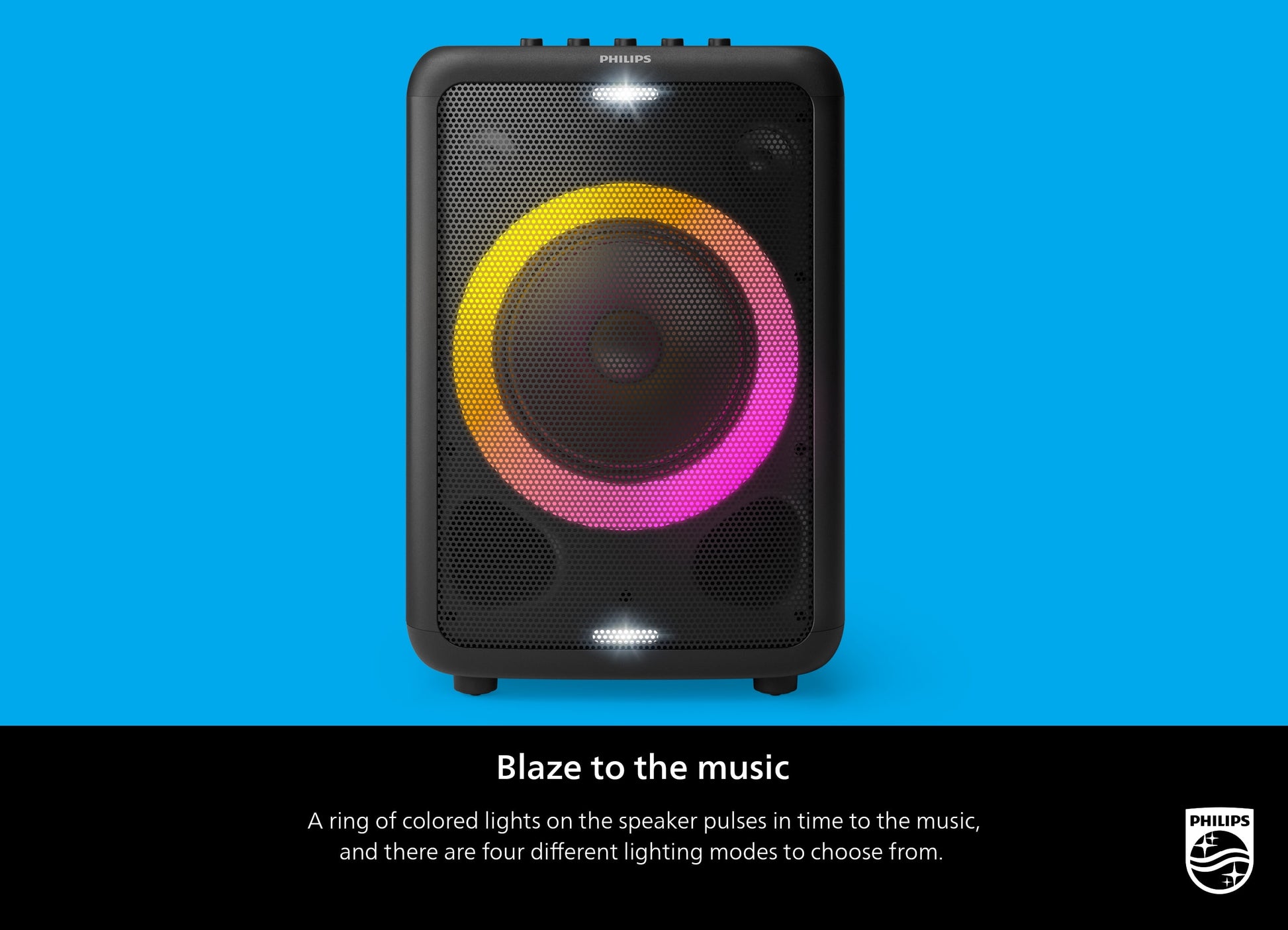 Philips X3206 Portable Bluetooth Party Speaker with Party Lights and Built-in Carry Handle, Medium Size, Black, TAX3206