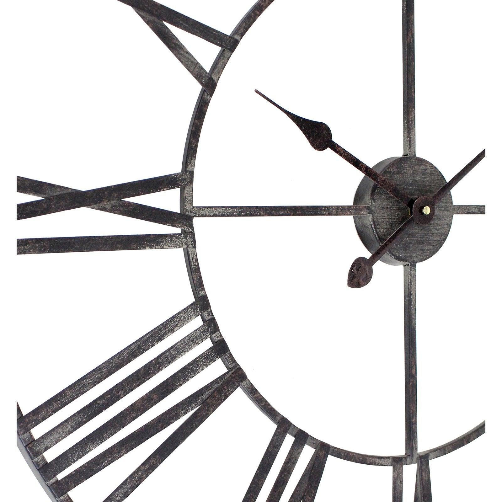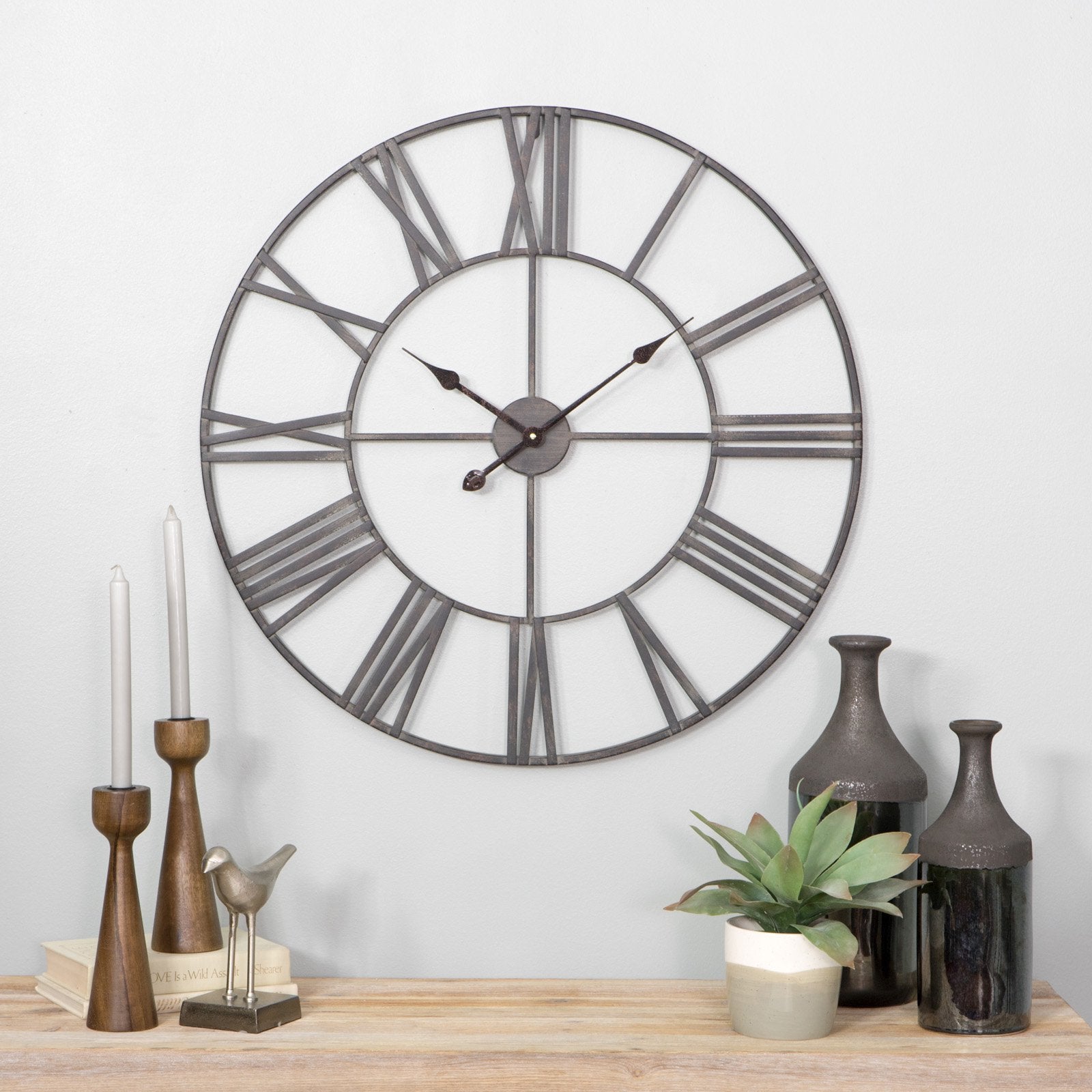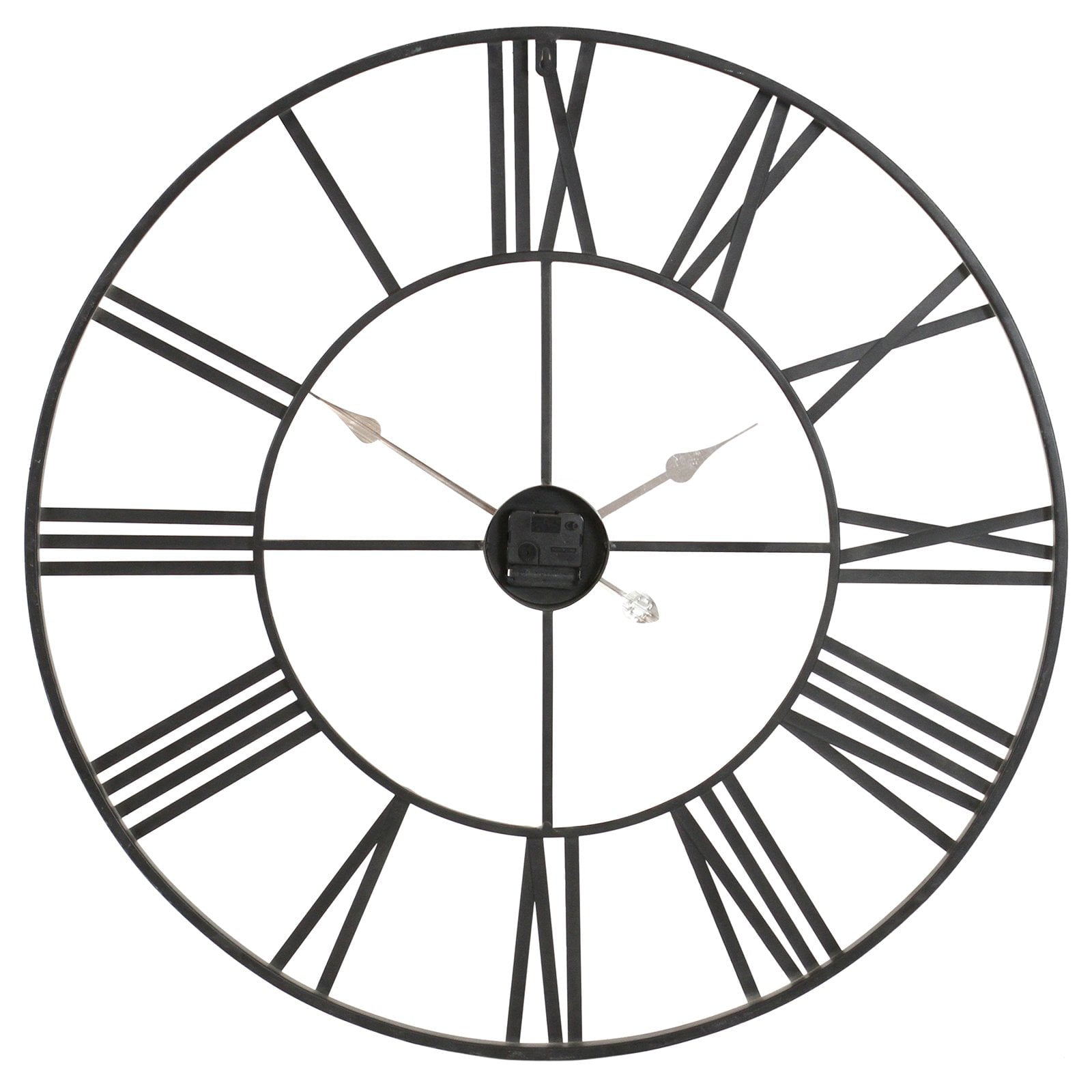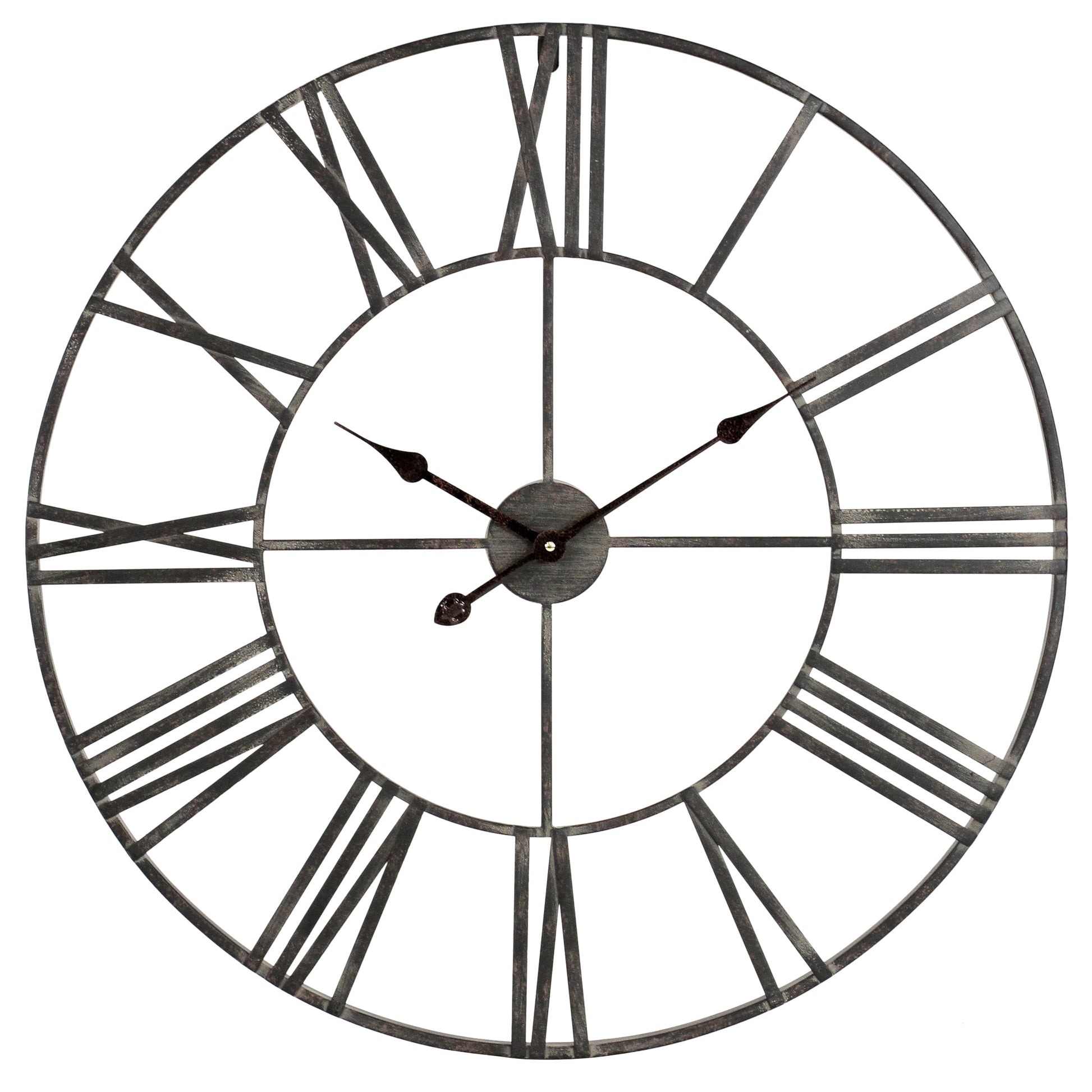 About this itemProduct detailsThis attractive wall clock boasts a sleek design that blends with a variety of decorating styles. Crafted from iron with a distressed gray finish and featuring an open pass-through design. This large wall clock fits seamlessly into any home or office. Crafted from iron Distressed gray finish Open pass-through design Blends with a variety of styles High-quality quartz movement Uses 1 AA battery (not included) Size: 30W x 1.5D x 30H in Color: a Weight: 14.62lb MPN: 5155 error:We aim to show you accurate product information. Manufacturers, suppliers and others provide what you see here, and we have not verified it. See our disclaimer